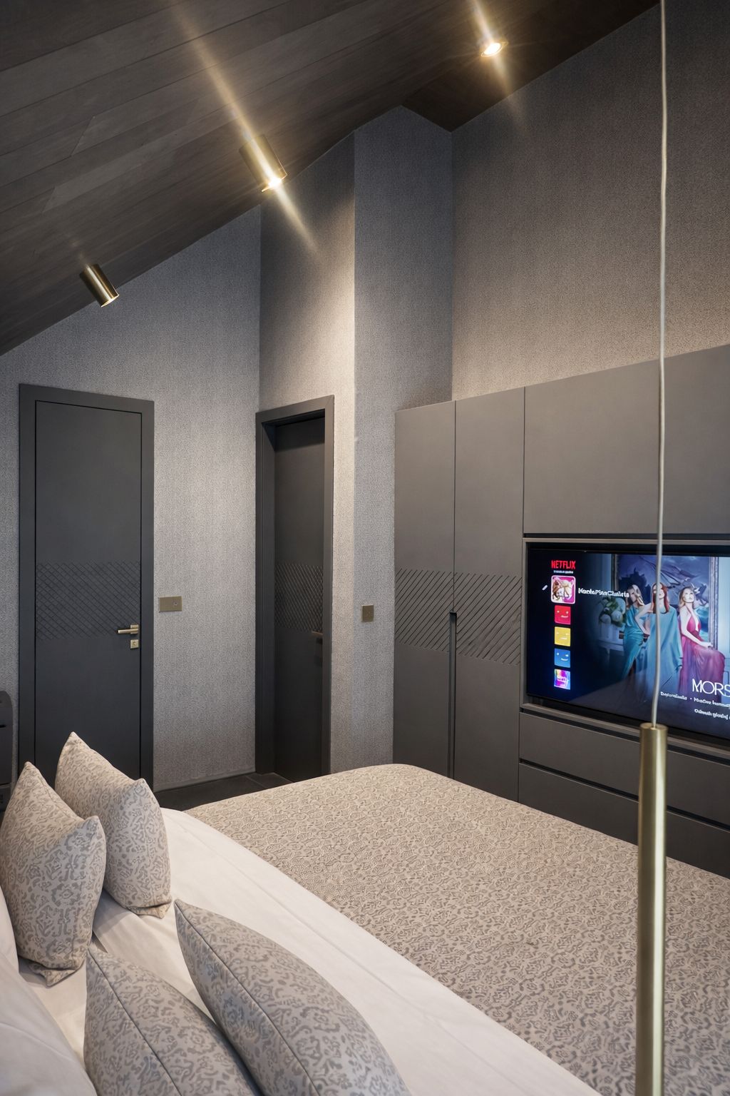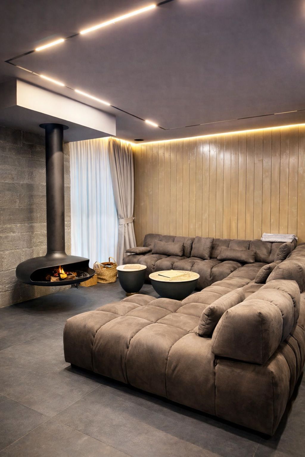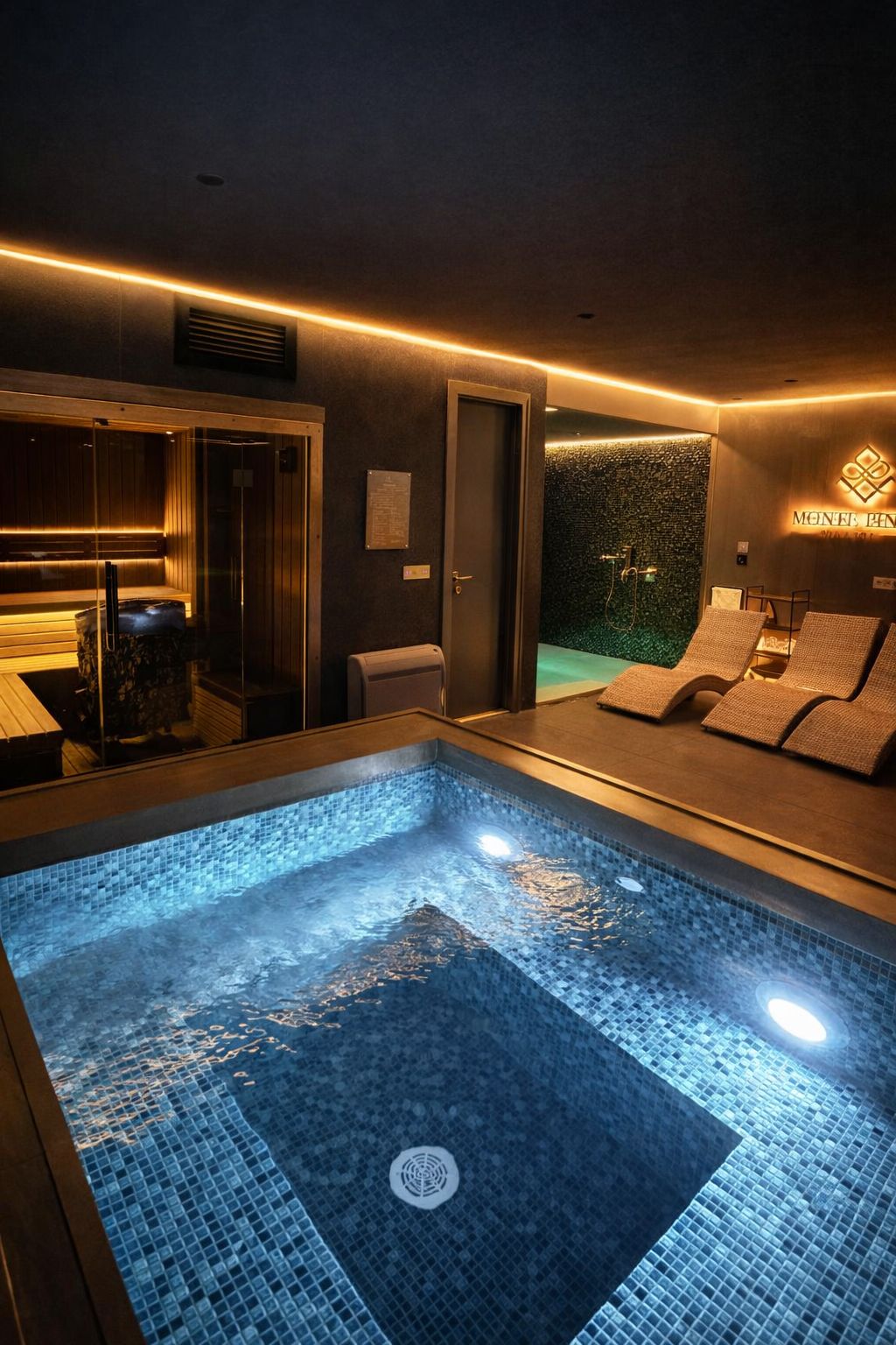 The property perfectly fuses a typical mountain exterior, with a contemporary ambiance and decorative interior. The ground floor offers a bright living room with a wood-burning fireplace, a fully equipped kitchen and dining room with a balcony. Balcony has its private jacuzzi and sitting area with a fireplace.